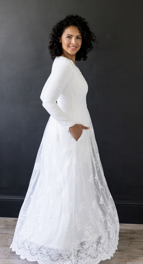 Springville white lace dress LDS temple and bridal gown